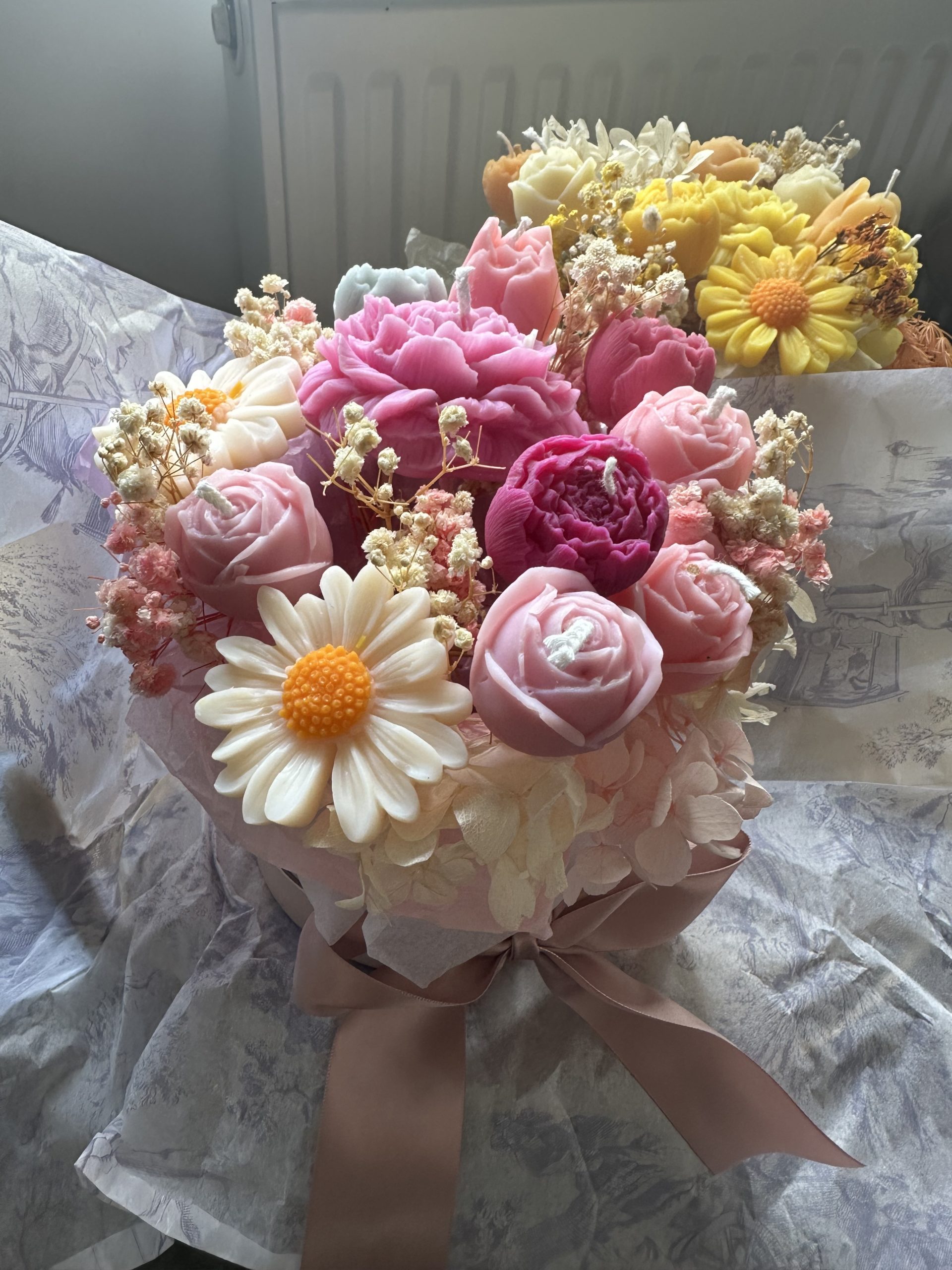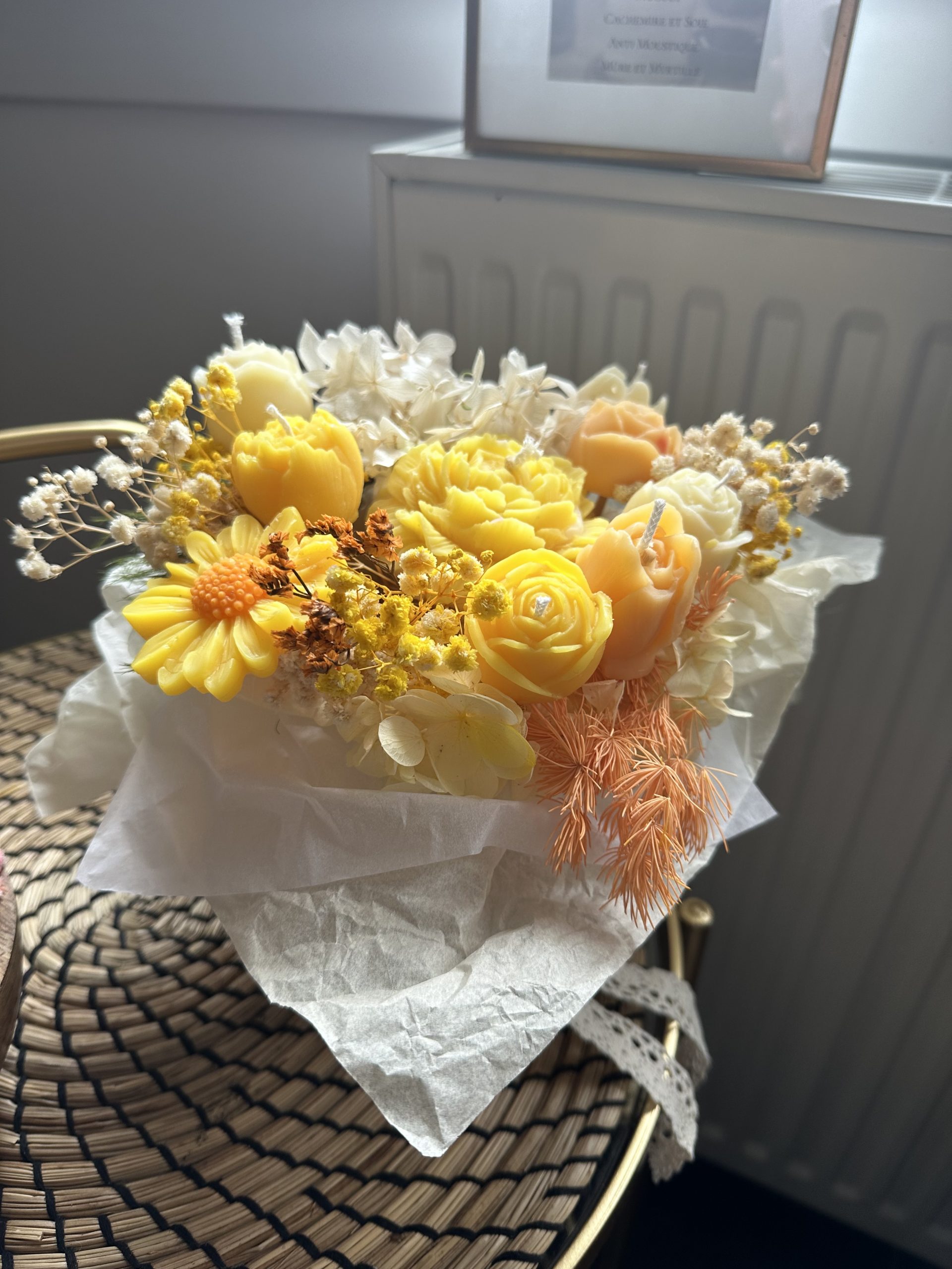 Ce joli bouquet, composé de fleurs séchées naturelles et de fondants parfumés à la cire d’olive et aux parfums de Grasse, offre une expérience olfactive délicate et authentique. Il embaume subtilement votre espace avec des arômes envoûtants.